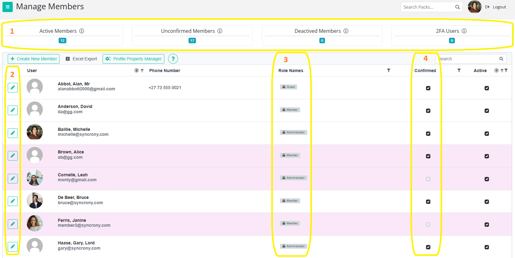 - Unconfirmed Members: Tracks members who have not yet accepted their invitation or set a password