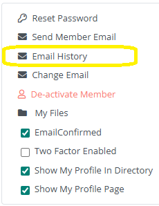 - On the right-hand side, below the profile picture, locate the Email History option (it's the fourth option from the top).