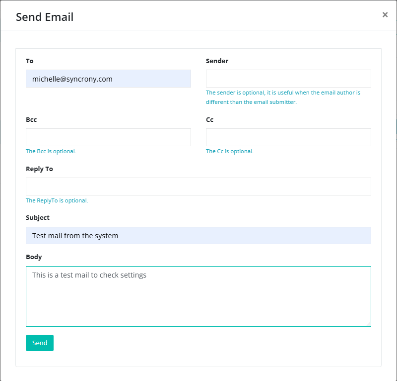 You can use this feature to confirm that your SMTP mail-sending settings are configured correctly.