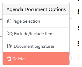 Toggle whether the signature document appears in the agenda. If excluded, the document name will appear with a strikethrough.