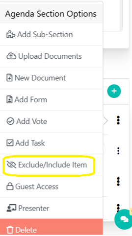 To do this, click on the three dots next to the agenda section or document you want to exclude or include.