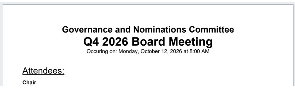 Sometimes, if a meeting title is too long, it can cause overlapping text on the agenda page of your board pack.