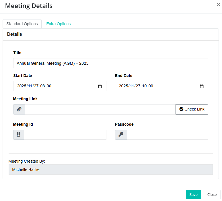 Almost all of the fields in the form above can simply be changed and saved to update the meeting details. However, the items below need some additional care: