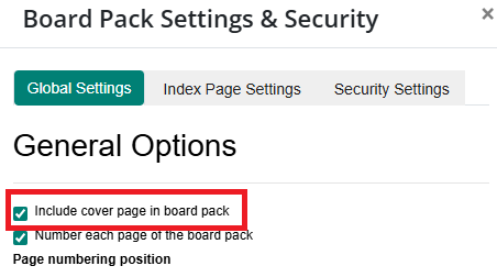 - On the Global Settings tab, under General Options, deselect Include cover page in board pack.