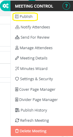 Publishing a meeting in BoardCloud occurs after the agenda has been approved and the company secretary is ready to make the meeting content available to invited members.