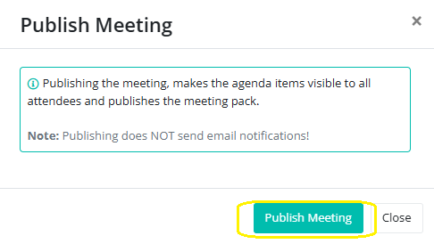 Publishing a pack makes the pack visible to all members with access to the meeting and automatically redirects any previously emailed links to the latest published version, so you do not need to resend notifications.