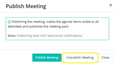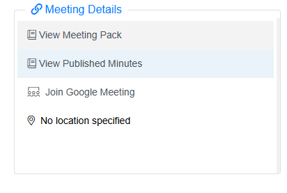 When a pack is unpublished, the green check mark next to View Meeting Pack disappears in the meeting details.