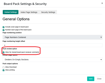 Note: This setting affects both board pack reviewers and minutes reviewers, determining whether comments are shared among all reviewers.