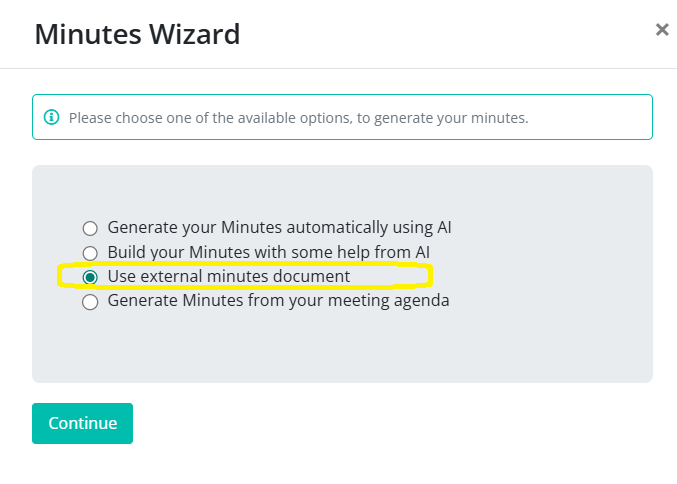 Select Use External Minutes Document.