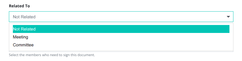 You can select the relevant committee or meeting group to sign the document from a drop down menu.